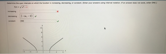 How do you find the increasing interval? Using interval notation, determine the intervals over which the graph given below increases, decreases, or is constant. Jan 05, 2019 · for the function: On the interval 0, 4 Ï€, indicate in interval notation when it is increasing and when it is decreasing. Analysis of the solution notice in this example that we used open intervals (intervals that do not include the endpoints), because the function is neither increasing nor decreasing at latext=1/latex , latext=3/latex , and latext=4/latex.